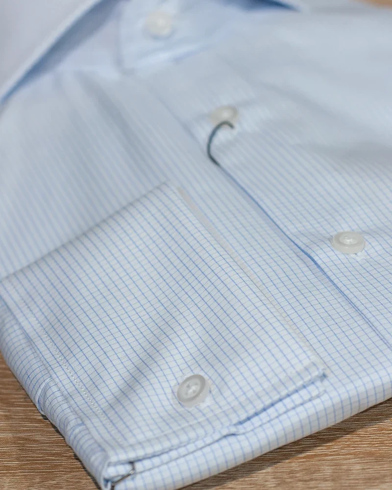CAMISAS VESTIR 1000 RAYAS CELESTE FONDO BLANCO