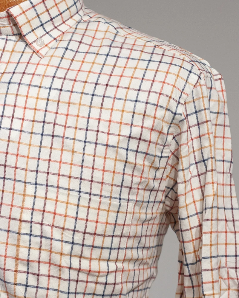 Camisa de corte regular fit .Diseño de tejido a cuadros en varias tonalidades, cuello clásico de botón y manga larga con puños simples y bolsillo en delantero.