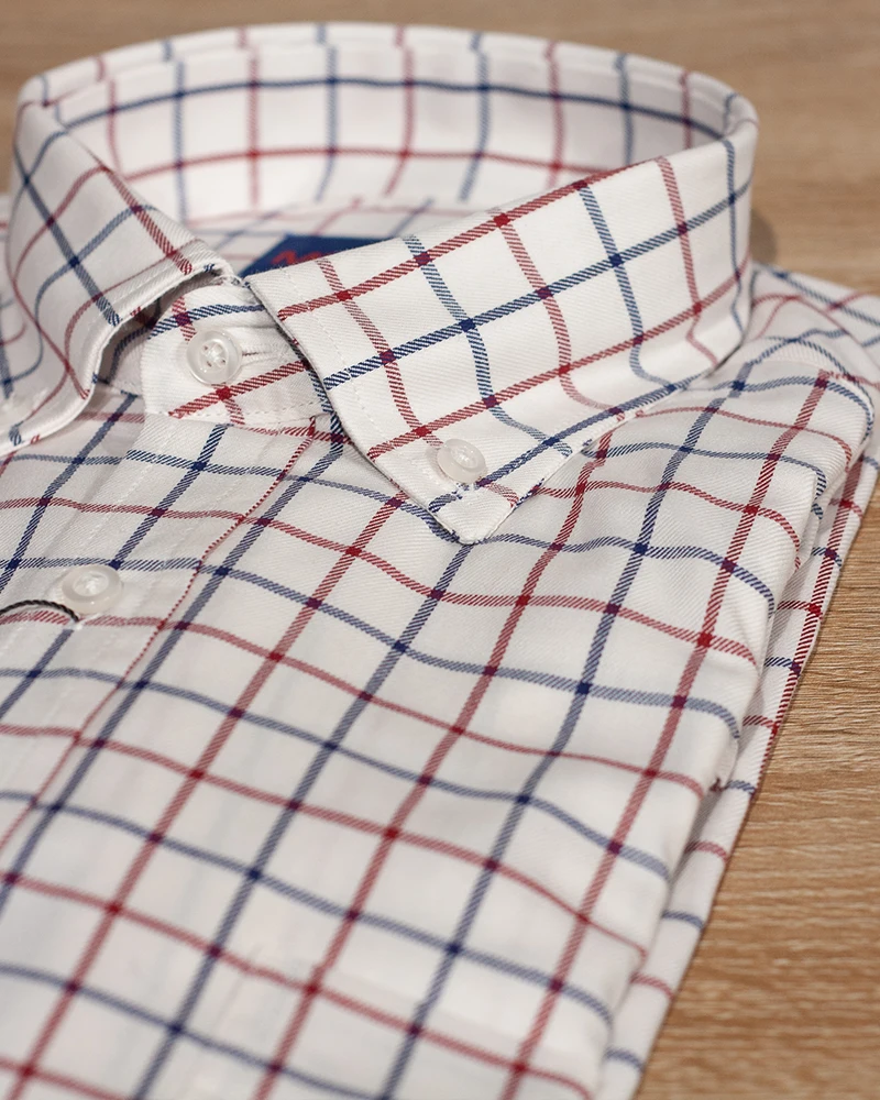 Camisa de corte regular fit confeccionada en algodón. Diseño de tejido a cuadros, cuello clásico de botón y manga larga con puños simples y bolsillo delantero. El cuadro ventana la convierte en una camisa clásica pero actual a la vez. Facil combinacion con jerseys o a cuerpo con americanas sport.