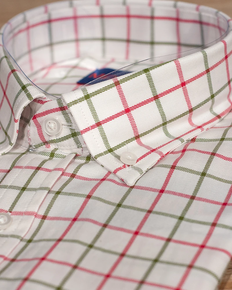 Camisa de corte regular fit confeccionada en algodón. Diseño de tejido a cuadros, cuello clásico de botón y manga larga con puños simples y bolsillo delantero. El cuadro ventana la convierte en una camisa clásica pero actual a la vez. Fácil combinacion con jerseys o a cuerpo con americanas sport.