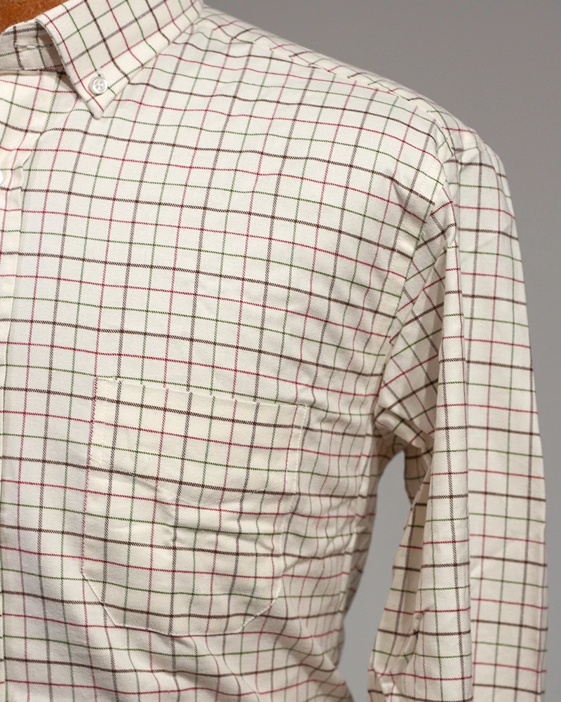 Camisa de corte regular fit confeccionada en algodón. Diseño de tejido a cuadros, cuello clásico de botón y manga larga con puños simples y bolsillo delantero. La suavidad del tejido convierte cada puesta en un auténtico placer.