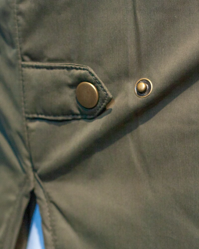 Cierre cremallera + botones de click metálicos (doble seguridad)