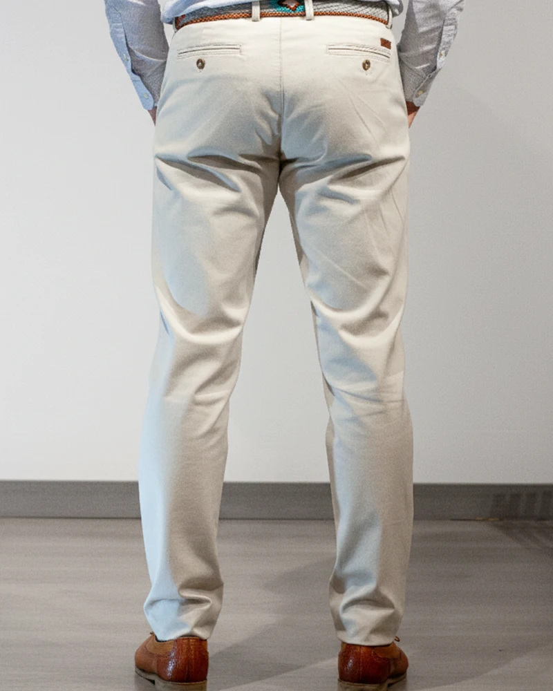 Pantalón chino en color piedra, el tono más vendido por su increíble versatilidad: combina con todo y nunca falla. Confeccionado en un tejido que ofrece libertad de movimiento y una gran comodidad. Su lavado especial le da un aspecto ligeramente envejecido y una suavidad al tacto que se agradece en el día a día.