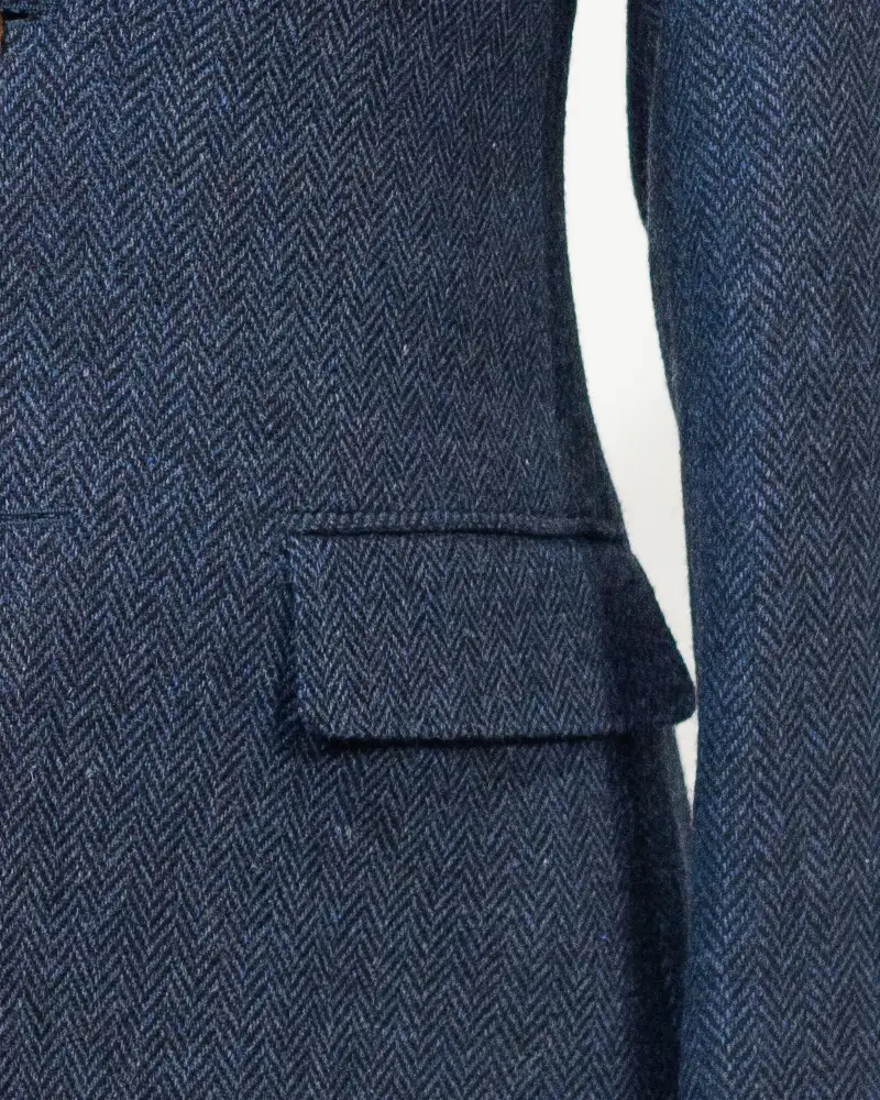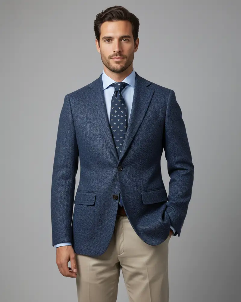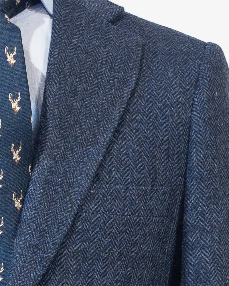 Diseño de tejido en espiga de tono azul marino, elegante y fácil de combinar.